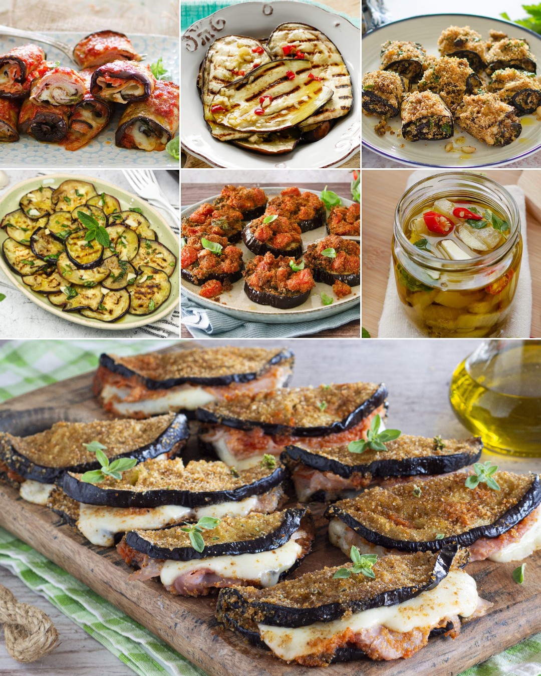 Fra traditionelle klassikere som aubergine parmigiana til mere originale retter som aubergine tacos eller vifteformet aubergine, til desserter som chokoladeaubergine, er mulighederne uendelige. Aubergine kan også bruges til at lave unikke cremer, såsom babaganoush (auberginekaviar), en typisk mellemøstlig ret, og smagfulde krydderier, såsom auberginepesto, ideel til en aperitif.