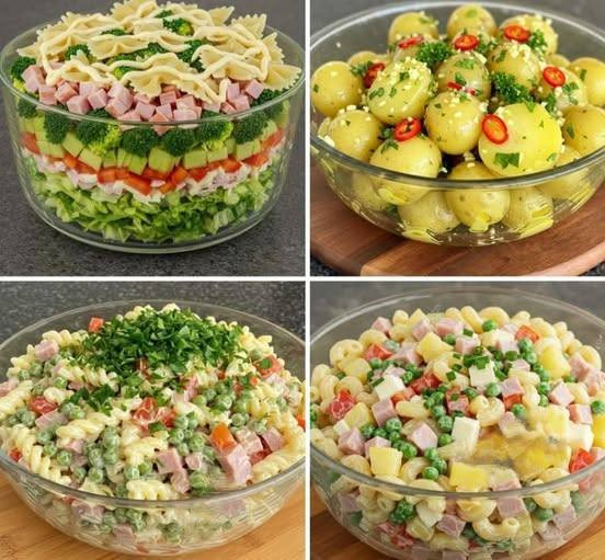 HURTIGE OG SMAGRIGE SAUCER JEG TILBYDER DIG DISSE 4 OPSKRIFTER I BYTTE FOR ET SIMPEL TAK🫂: — ✅. Lagdelt Pastasalat ✅. Lagdelt Pastasalat Ingredienser: Kogt pasta skåret i knuder 🍝 …