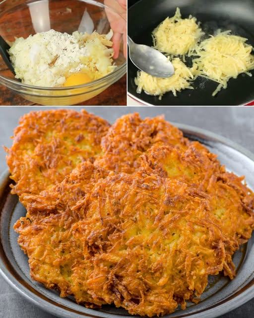 Ingredienser: 2 mellemstore kartofler 1 lille løg 1 æg 1 spiseskefuld mel 1 spiseskefuld revet ost Sort peber 1 tsk salt