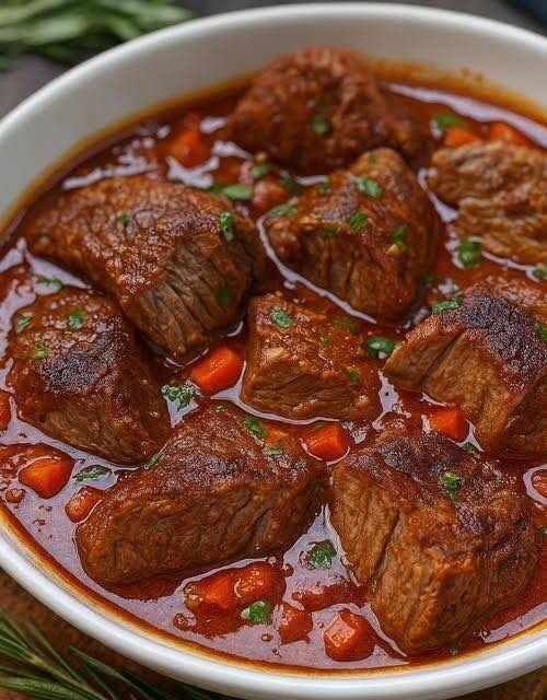 Möra bitar av nötkött sjuds långsamt i en fyllig, kryddad tomatbuljong med söta morötter och örter. Denna rejäla nötgryta är perfekt för mysiga kvällar och smakar ännu bättre nästa dag. …