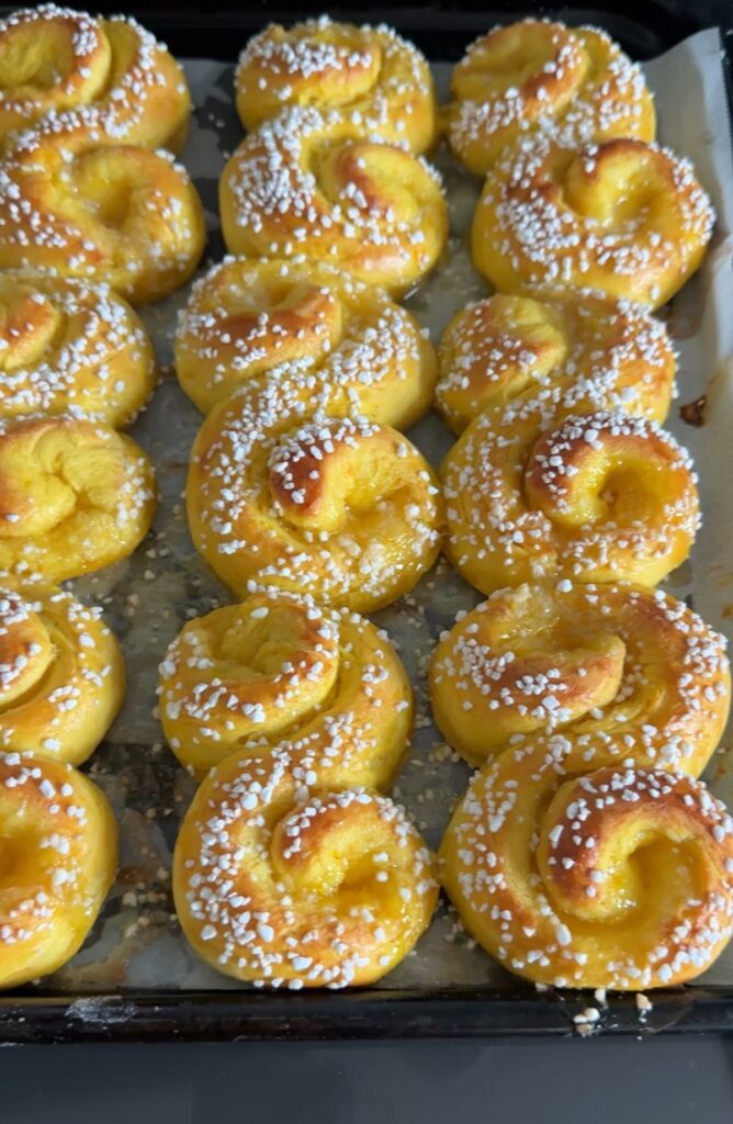 De allra godaste lussebullarna jag bakat!!! Jag lovar, de är extremt goda! Saffransbullar med smörkräm och knastrande pärlsocker på toppen. Lussebullarna blir så mycket godare med smörkräm och knastrande socker ovanpå! Ett riktigt toppenrecept …