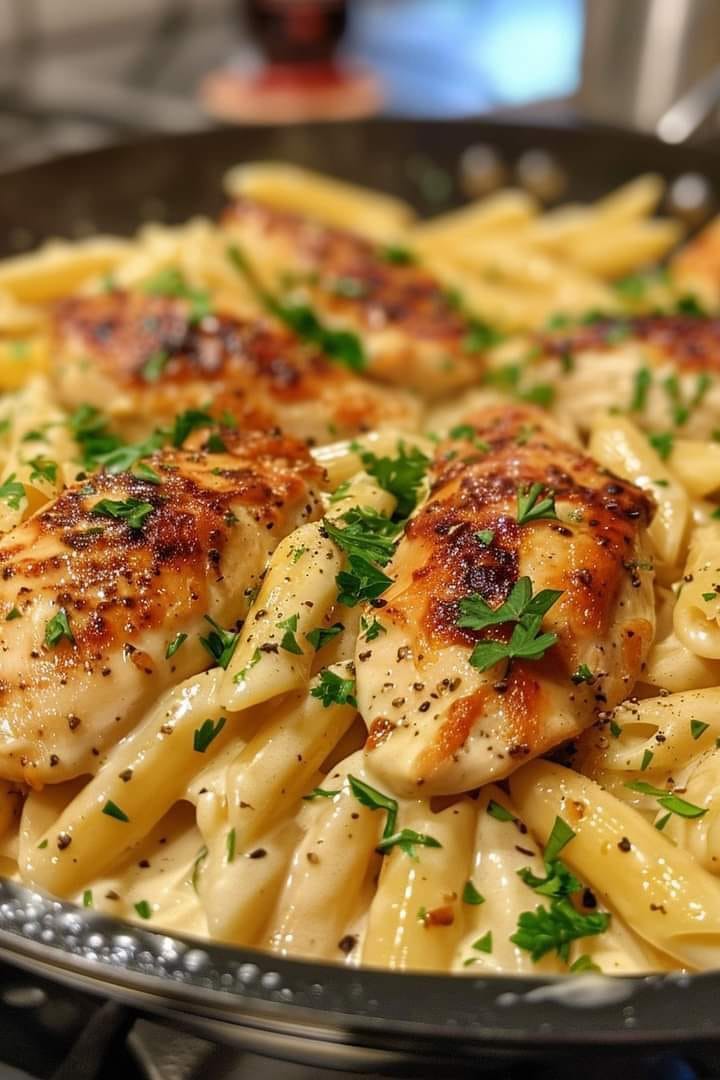 – Tilsæt kyllingebrystene og steg dem i ca. 6-7 minutter på hver side, eller indtil de er gyldenbrune og gennemstegte. Tag dem af stegepanden og lad dem hvile i et par minutter, før de skæres i skiver.
