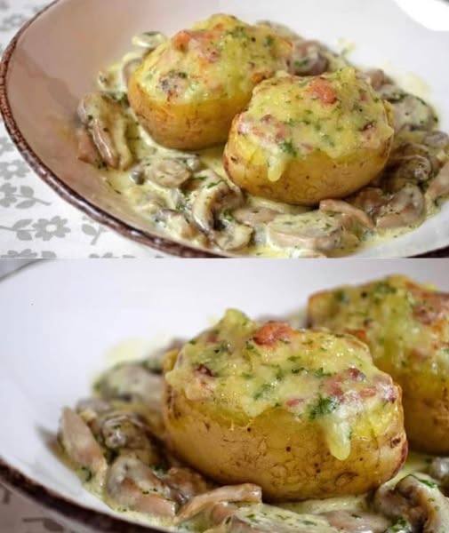 Kartofler fyldt med bacon og Reblochon-svampe med fløde