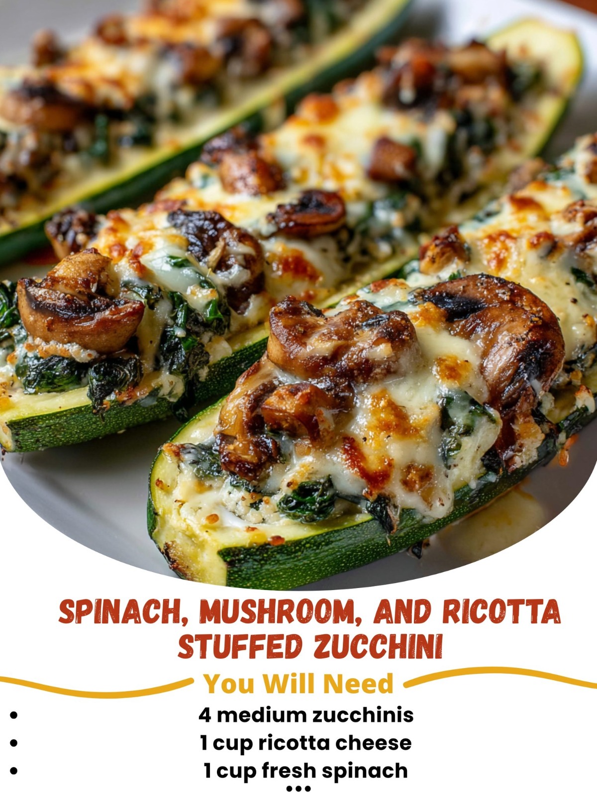 These spinach, mushroom, and ricotta stuffed zucchinis are a wholesome, cheesy, and satisfying vegetarian dish. Packed with savory sautéed veggies and creamy ricotta, they’re perfect as a light main course or a hearty side.